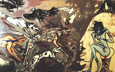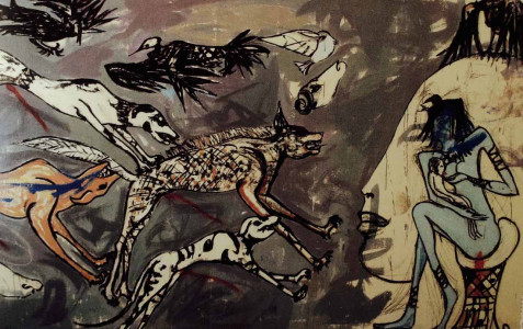 Elongated figures straight out of a pharaoh’s tomb merge with mythical and folkloric creatures and elements of Sufism to create a grand visual vocabulary that looks both familiar and fresh.
