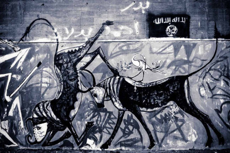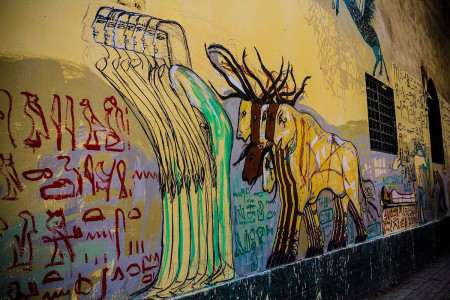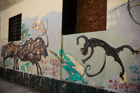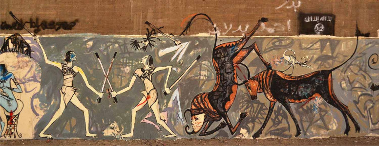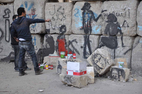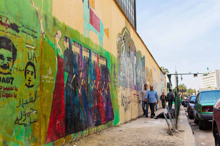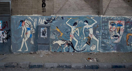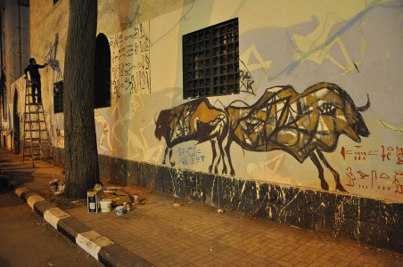 Alaa Awad revealed his neo-pharaonic style on Mohamed Mahmoud Street near Tahrir Square in Cairo in 2012.